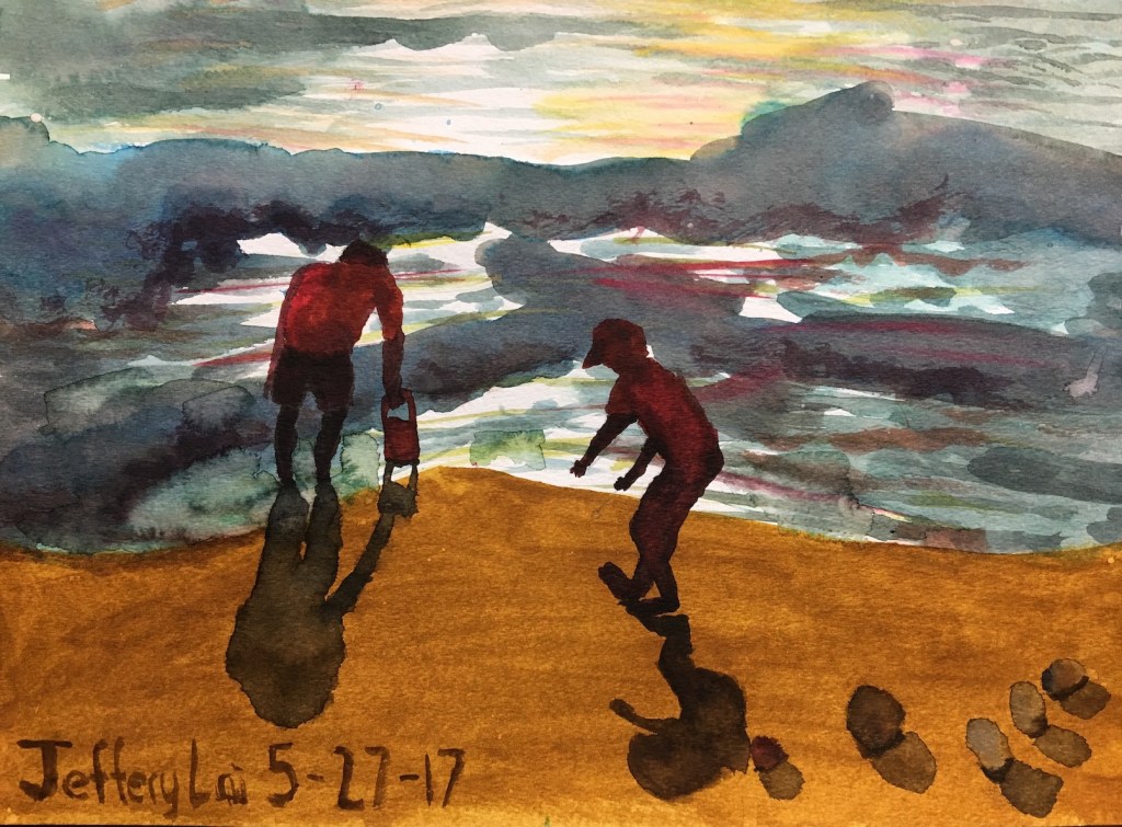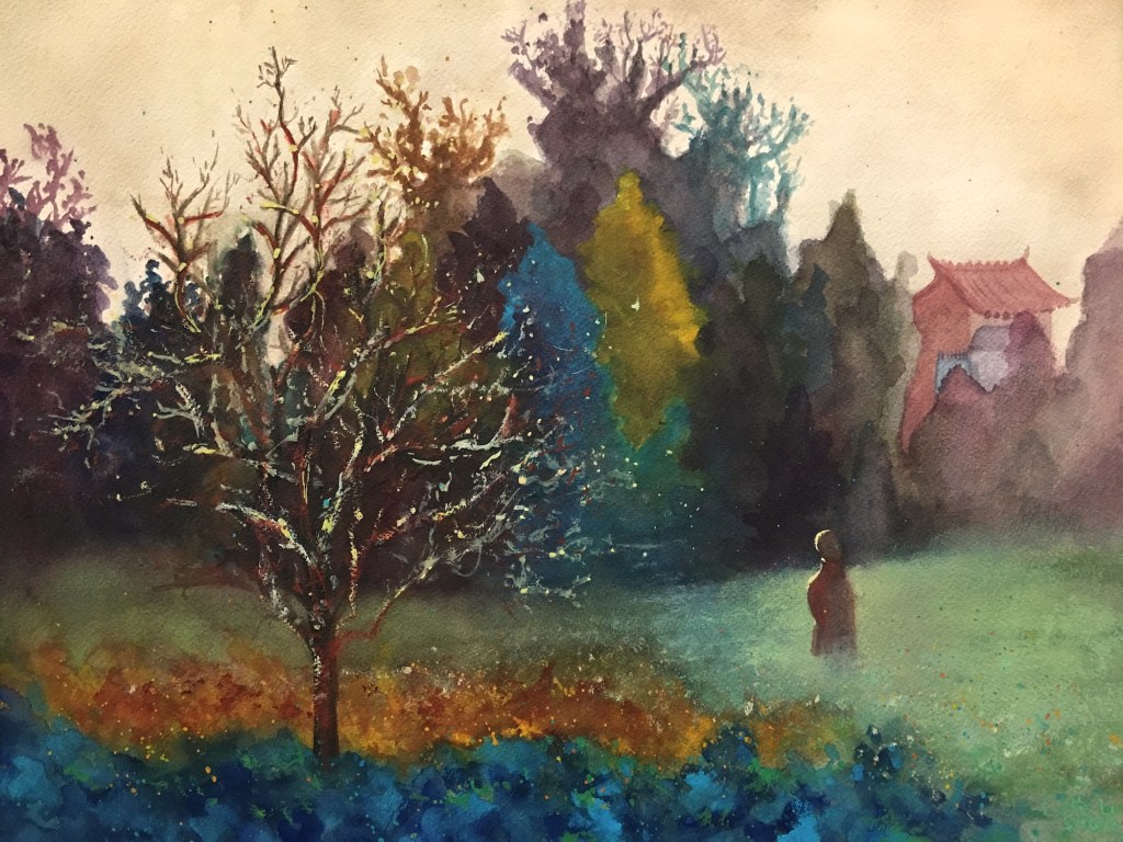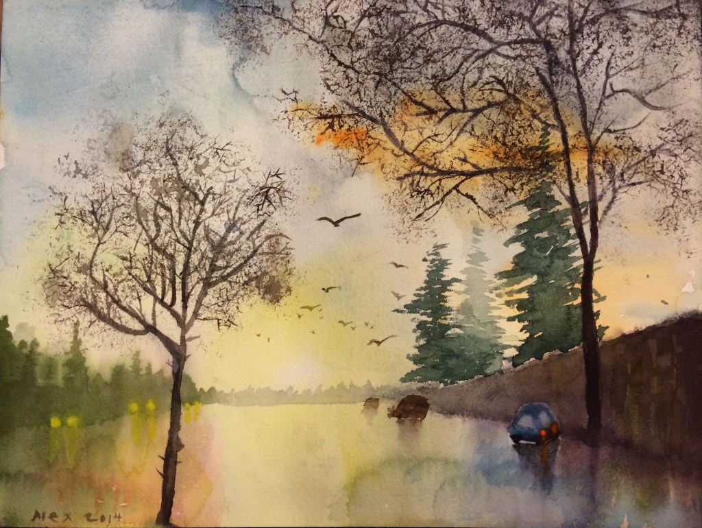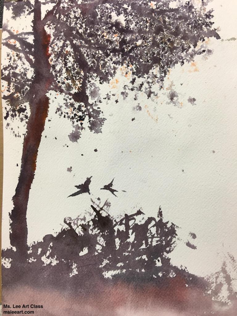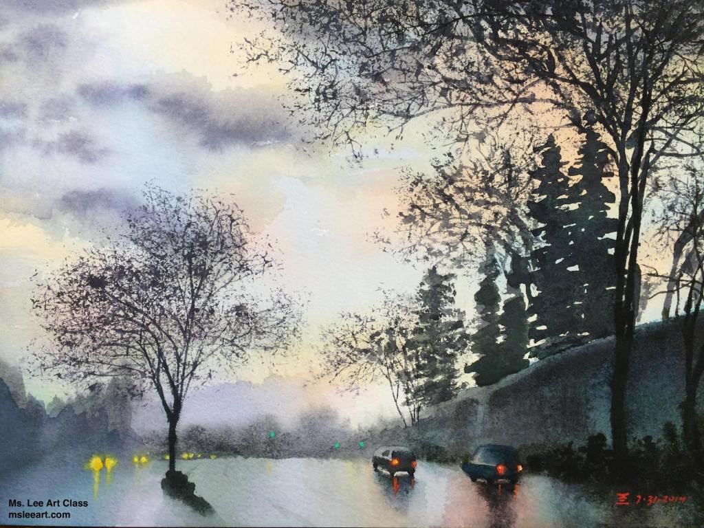 Of all the watercolor works in this gallery, a similar phenomenon is shared by the charcoal works in Gallery 1 and is marvelously displayed across the board; that is, while students use the same reference picture in the curriculum and apply the same aesthetic principles learned in the class, their work, however, amazingly manifests divergent beauty, creativity, and skills for the same subject matter. This is the unequivocal impact of what the instructions and inspirations tailored for each student promote: personal variations in expression, literary content enrichment, musicality in paintings, rhythmic arrangements, sense of movement, and improvisational performance in any given medium, in this case watercolor. Their work collectively shows that they are well-equipped, not only to cope with their own particular difficulties that occur in the painting process, but also to master this art medium confidently and gradually. All the resources and help from this studio have rendered each piece unique, independent, complete, and lively, showing innovative variations.